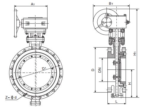 1、本閥采用三偏心密封結(jié)構(gòu),閥座與蝶板幾乎無磨損,具有越觀越緊的密封功能。