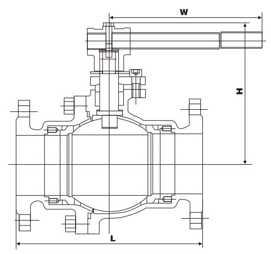 五、Q347F不銹鋼渦輪固定球閥規(guī)格主要尺寸: