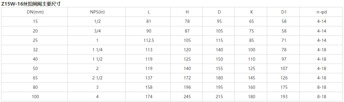 Z15W-16T 絲扣閘閥