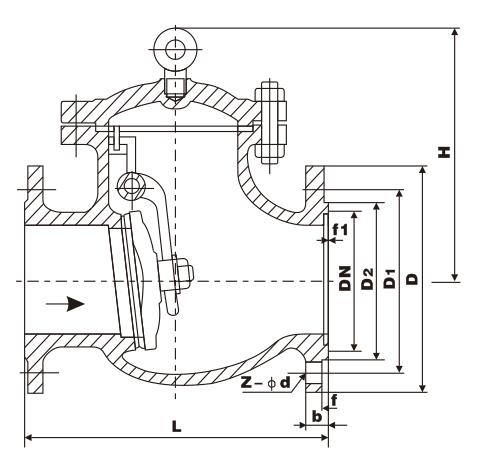 四、H44H/W國標旋啟式止回閥主要連接與外形尺寸及重量