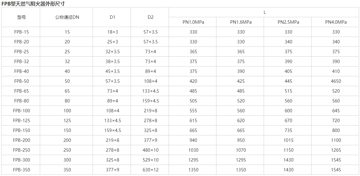 注:1、fpb型天然氣阻火器結(jié)的連接法蘭按hg20592-97凹凸面帶頸對(duì)焊鋼制管法蘭設(shè)計(jì)制造,用戶需選用其它標(biāo)準(zhǔn)的連接法蘭,請(qǐng)?jiān)谟嗀浿杏枰哉f(shuō)明。