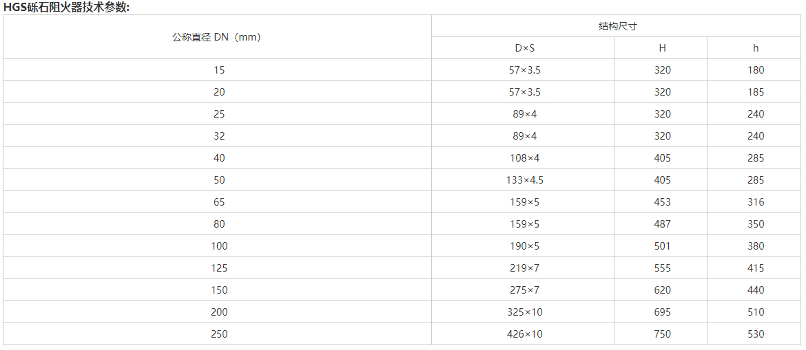 HGS礫石阻火器性能: