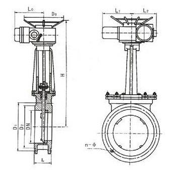 | 公稱壓力 | dn | l | d1 | d2 | h | a | b | c | d | n-φ | 電裝型號 |